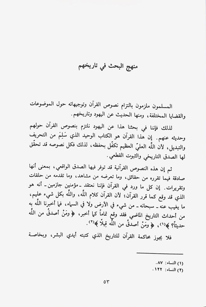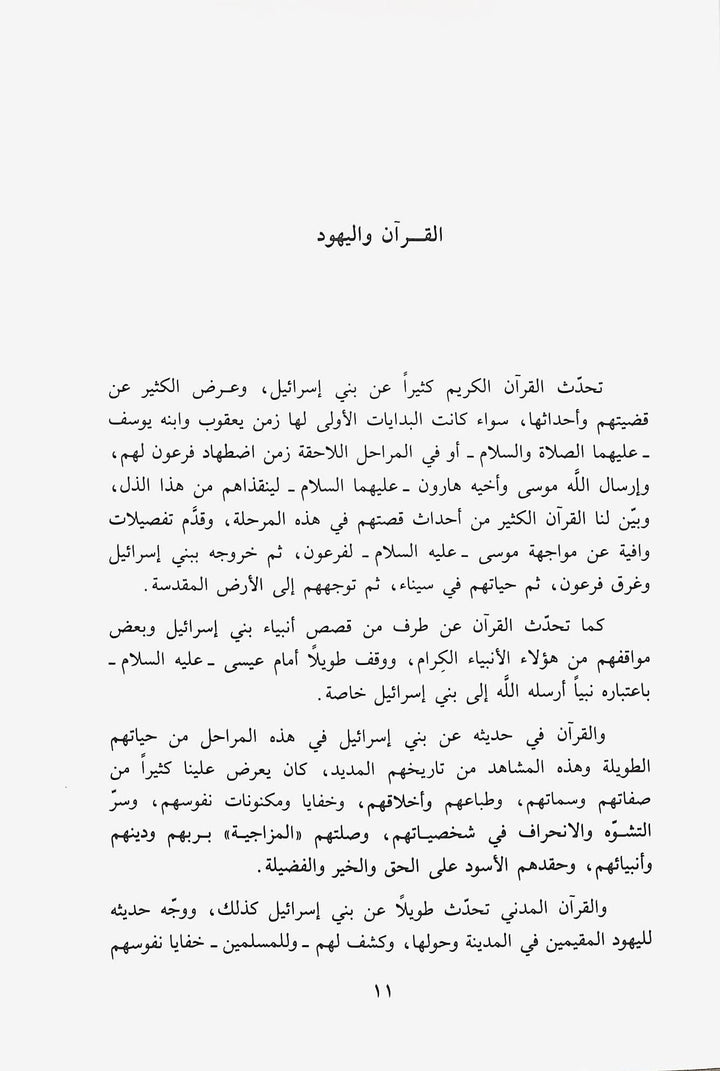 ثم تحدَّث عن مواطن الحديث عن اليهود في القرآن مع تقديم خلاصة لتاريخهم كما عرضه القرآن الكريم