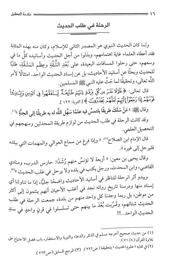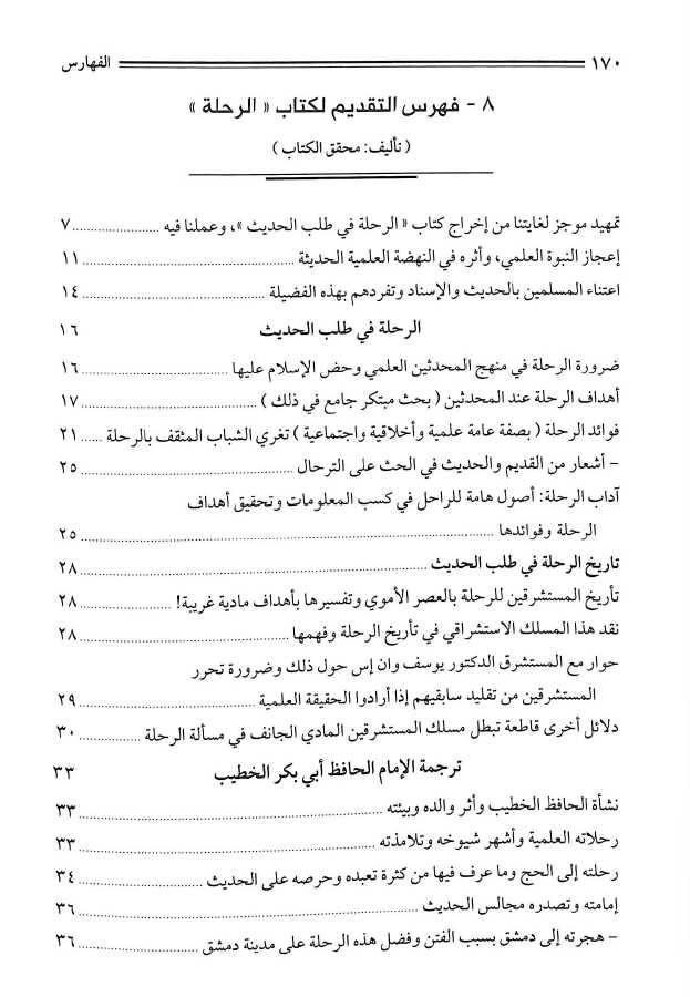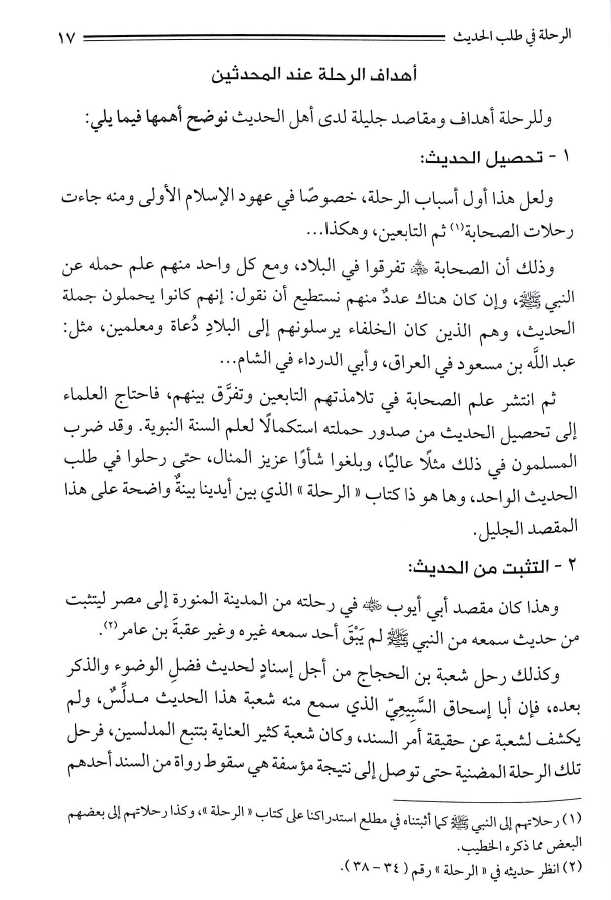 كتاب يعرض فيه مصنفه لعلو همة العلماء الأقدمين من الصحابة والتابعين ومن بعدهم، ومثابرتهم على العلم والصبر في طلبه وخروجهم في أسفار طويلة من أجله، وقد تكلم في هذا الكتاب عن الذين سافروا ورحلوا في طلب حديث واحد من أحاديث رسول الله صلى الله عليه وسلم . دون من سافر في طلب أكثر من حديث لكثرتهم، وهو هنا يذكر الحديث بسنده ويذكر قصة الرحلة في طلبه