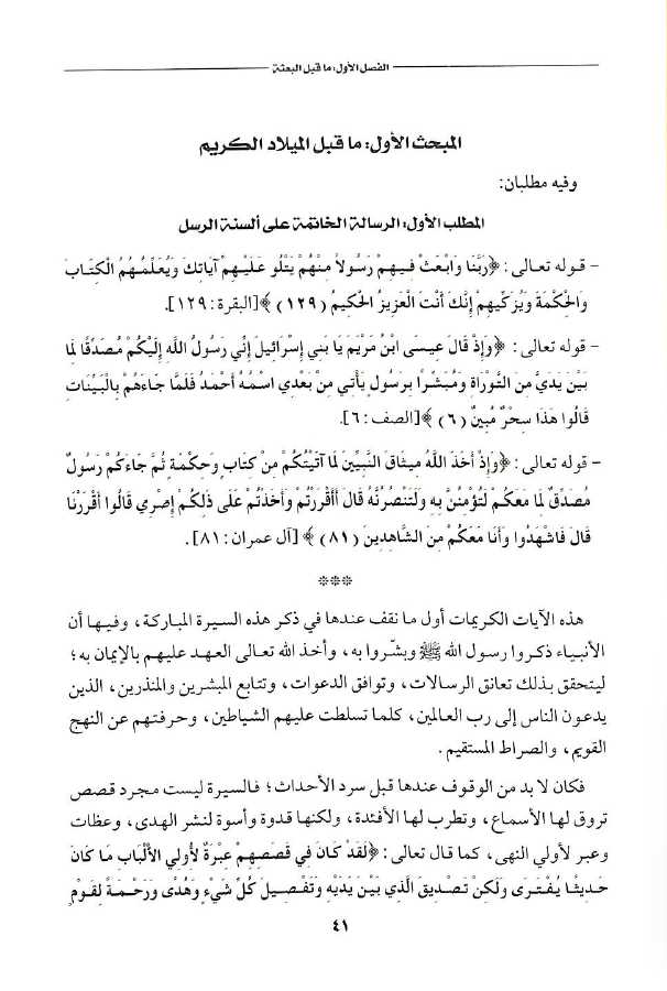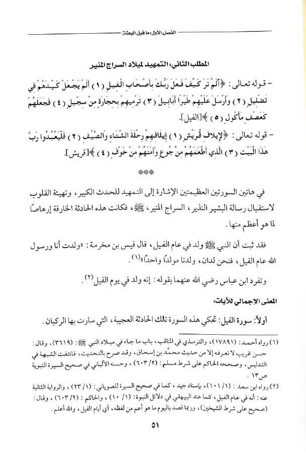 أنزل الله تعالى كتابه هداية للعالمين، وهو أعظم مقاصده، وأعلى مراميه وأجل فوائده، كما قال تعالى: (وَمَا أَنْزَلْنَا عَلَيْكَ الْكِتَابَ إِلَّا لِتُبَيِّنَ لَهُمُ الَّذِي اخْتَلَفُوا فِيهِ وَهُدًى وَرَحْمَةً لِقَوْمٍ يُؤْمِنُونَ) (النحل: 64)، فذكر سبحانه وتعالى في هذه الآية ثلاث حكم لإنزال القرآن، وهي: البيان، والهدى، والرحمة، وقطب هذه الثلاثة هو الهدى؛ فالبيان وسيلته، والرحمة ثمرته، فجميع مقاصد القرآن تؤدي في غايتها إل هداية العالمين. لذلك كان أول سؤال في القرآن في أول سورة هو سؤال الهداية، في قوله تعالى: (اهْدِنَا الصِّرَاطَ الْمُسْتَقِيمَ) (الفاتحة: 6)، فكانت الإجابة مباشرة في بداية ثاني سورة بأن سبيل الهداية في هذا القرآن العظيم، فقال سبحانه: (ذَلِكَ الْكِتَابُ لَا رَيْبَ فِيهِ هُدًى لِلْمُتَّقِينَ) (البقرة: 2)، وهو من وجوه المناسبة بين السورتين. وأن أول إنسان تحقق بهدى القرآن هو من أنزل عليه، وهو رسول الله صلى الله عليه وسلم، فامتن الله تعالى عليه بهذا الهدى، فقال تعالى: (وَوَجَدَكَ ضَالًّا فَهَدَى) (الضحى: 7). فتبين من ذلك أن الهدى الذي جاء به القرآن بيانا لفظيا متحقق في حياة النبي صلى الله عليه وسلم عمليا وواقعيا؛ فلذلك كانت أقواله وأفعاله وأحواله بحق منارة للاقتداء، ودوحة للائتساء: (لَقَدْ كَانَ لَكُمْ فِي رَسُولِ اللَّهِ أُسْوَةٌ حَسَنَةٌ) (الأحزاب 21). - ولكل هذه المعاني الإيمانية: كانت هذه الدراسة، التي تبين سيرة النبي صلى الله عليه وسلم من خلال القرآن، فالسيرة هي التفسير العملي لآيات القرآن، كالتفسير القولي الذي يكون بالبيان. - ومن أسباب اختيار الموضوع أن القرآن مصدر الهدى، والنبي صلى الله عليه وسلم هو المتمثل به، والمبلغ له، فلا بد من بيان تلك العلقة الوثيقة، والوشيجة العميقة، من خلال التأصيل للسيرة النبوية في ضوء القرآن العظيم. والقرآن الكريم يشير إلى أهم المهمات، وأعظم الهدايات، سواء في الاعتقادات أو الأحكام أو القصص، فالنظرة العلمية الإيمانية تستدعى الوقفة التدبرية، والفكرة التأملية لما جلاه القرآن وأظهره، وما تركه وأغفله، من جوانب السيرة، مع استنباط الحكم، وتحلية المقاصد في كل ذلك. واخترت الدراسة في العهد المكي؛ لجوانب من التوافق التي بينه وبين ما يعيشه بعض المسلمين اليوم من غربة الدين، وتكالب الأعداء، وأصناف الابتلاءات، هذا مع عزمي على متابعة الدراسة لتشمل العهد المدني، لتستكمل جميع آيات السيرة، بإذن الله تعالى. - والمنهج في البحث: ذكر الآيات بحسب ترتيب السيرة، ثم الكلام عما تتضمنه الآيات من أحداث، ثم المعنى الإجمالي للآيات، ثم ما فيها من هدايات إيمانية، وتربوية، ودعوية ظهرت من تدبر الآيات وربطها بالأحداث، مع العناية بأقوال المفسرين واستنباطاهم، ولم أقصد الاستقصاء؛ فإن الهدايات لا نهاية لها، وإنما ذكرت ماله تعلق بمعالم السيرة. - ذكرت بعد ذلك من الروايات ما يبين الآيات، ويوضح الأحداث دون استطراد في التفصيلات، أو الحواشي والتعليقات، ولم أذكر الأحداث التي لم يشر إليها القرآن الكريم تصريحاً أو تلويحاً. - وخطة البحث: البدء بمقدمات حول السيرة النبوية، من حيث مفهومها، ونشأها، وتاريخها، ومراحل الكتابة فيها، ومناهج الكتابات فيها، وأهميتها. ثم مقدمات حول الهدايات القرآنية، من حيث مفهومها، ومجالاها، وطرق الوصول إليها. ثم قسم البحث إلى أربعة فصول: الأول: فيما قبل البعثة، والثاني: في البعثة وبداية الدعوة، والثالث: في هجرة الحبشة والإسراء والمعراج، والرابع: في الهجرة النبوية