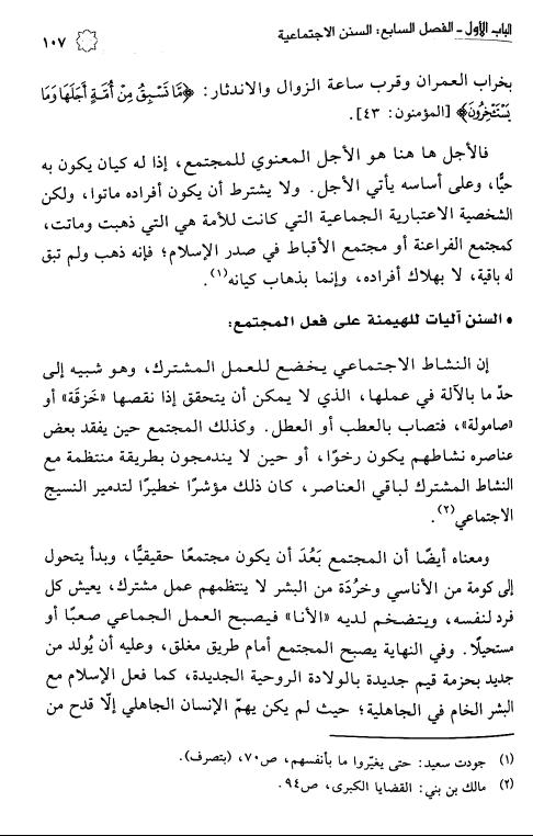 السنن الاجتماعية في القرآن الكريم وعملها في الامم والدول
