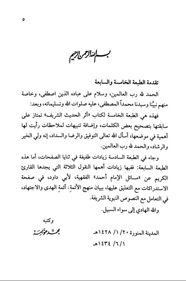 إن هذا الكتاب اثر الحديث الشريف هو جسرٌ بين علمي الرواية والدراية : رواية الحديث وفقهه
