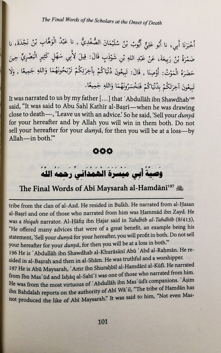 Title: The Final Words of the Scholars at the Onset of Death - English Translation Of وَصَايَا العُلَمَاءِ عِنْدَ حُضُوْرِ / Wasāyā Al-'Ulemā 'Inda Hudhur Al-Mawt