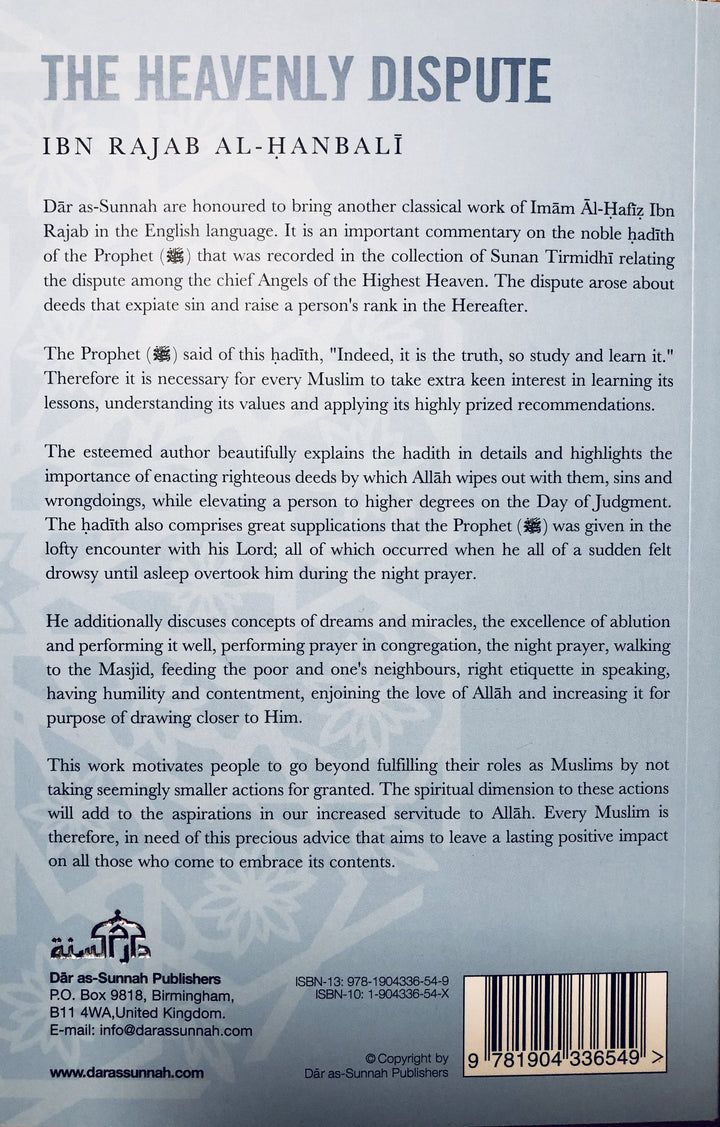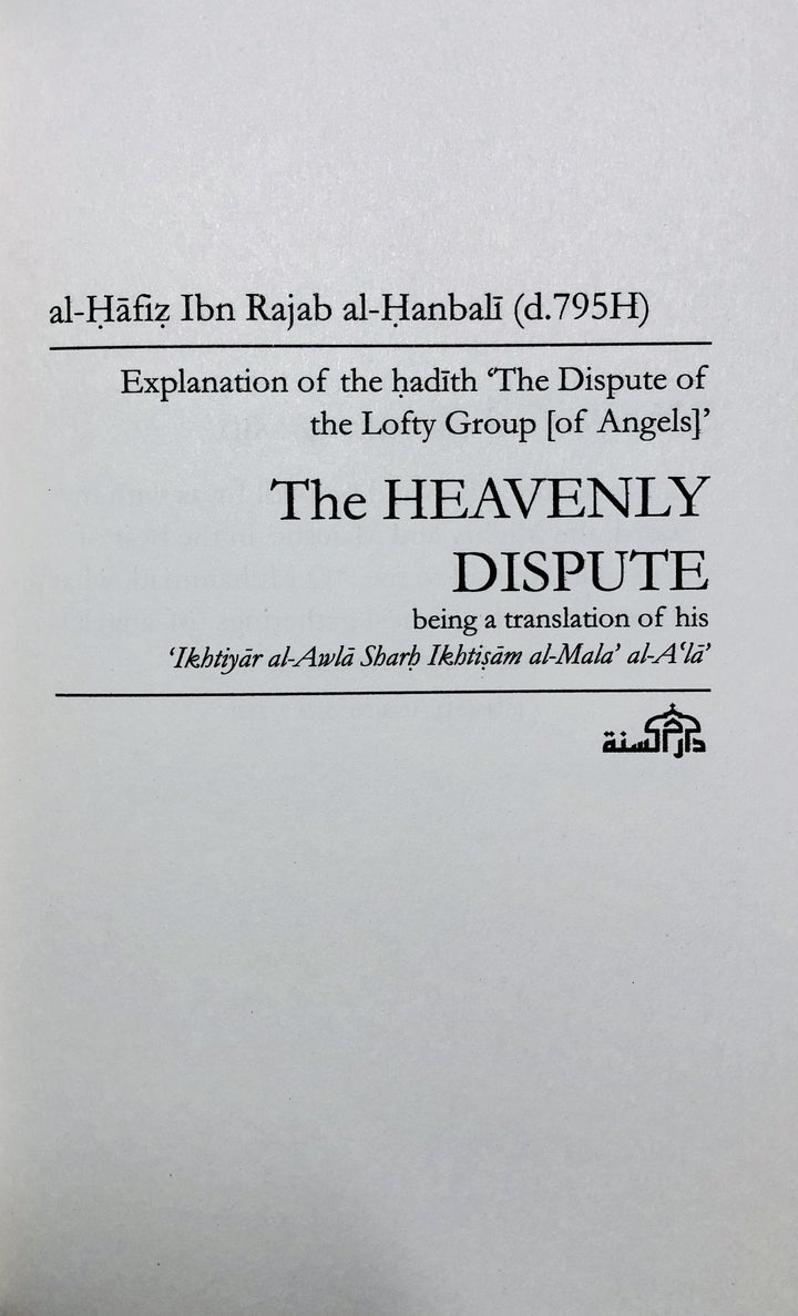 The Heavenly Dispute is an English translation of the classical work Ikhtiyar al-Awla Sharh Ikhtisam al-Mala' al-A'la by Imam Al-Hafidh Ibn Rajab
