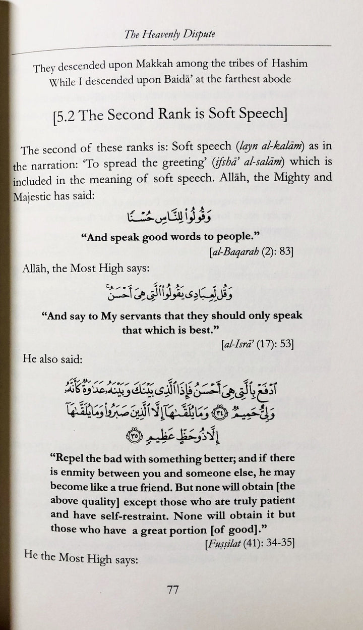 This work is an important commentary on the noble hadith of the Prophet (Sallallahu Alayhe Wassalam) that was recorded in the collection of Jami' at-Tirmidhi relating the dispute among the chief Angels of the Highest Heaven. The dispute arose about deeds that expiate sin and raise a person's rank in the Hereafter.