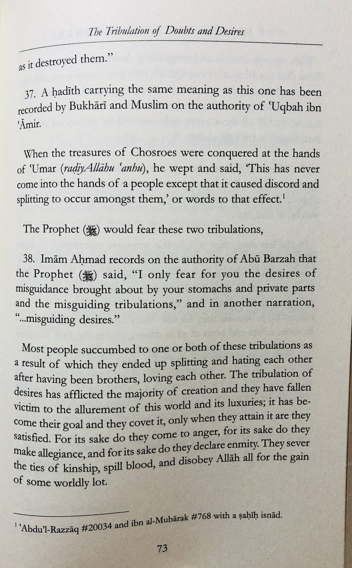 The first is a treatise penned by the great Imam, al-Ajurri (d. 330H), a scholar known for his deep knowledge and piety, his quality being recognised by all. The second is a monograph written by the Imam, ibn Rajab al-Hanbali (d. 795H), a scholar praised extensively for his vast knowledge, asceticism and expertise in the Hanbali school of thought. An introduction has been added from the words of Imam Al-Shatibi and an appendix from ibn al-Qayyim's monumental work Madarij al-Salikin.