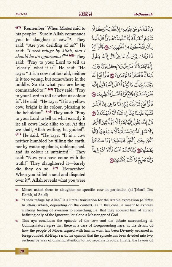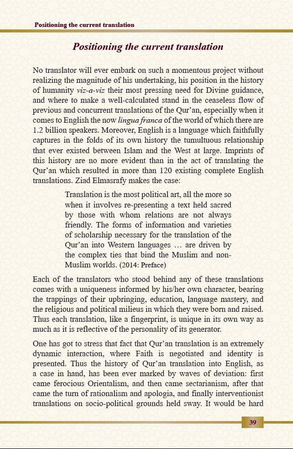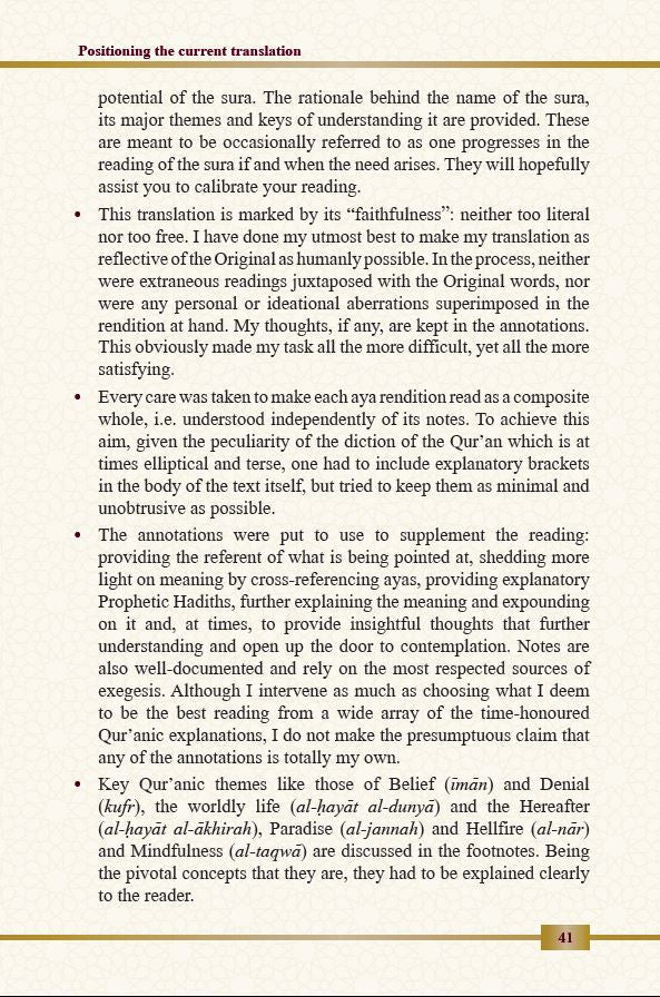 The translation is marked by its 'faithfulness'. It's neither too literal nor to liberal that it drifts away from conveying the original Quranic text.