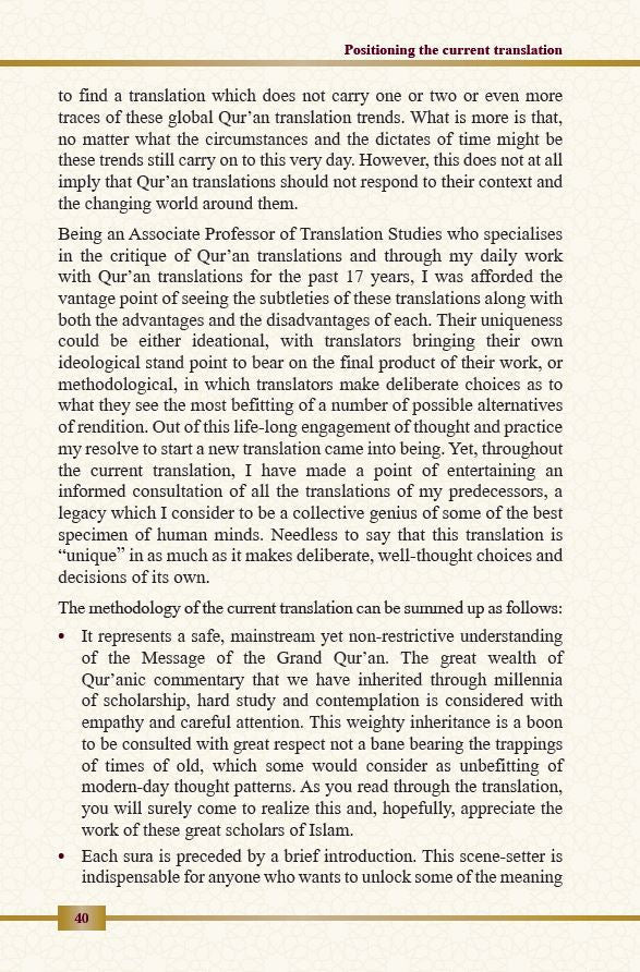 Each surah is preceded by a short introduction which serves as a scene-setter for unlocking the message of the Surah.