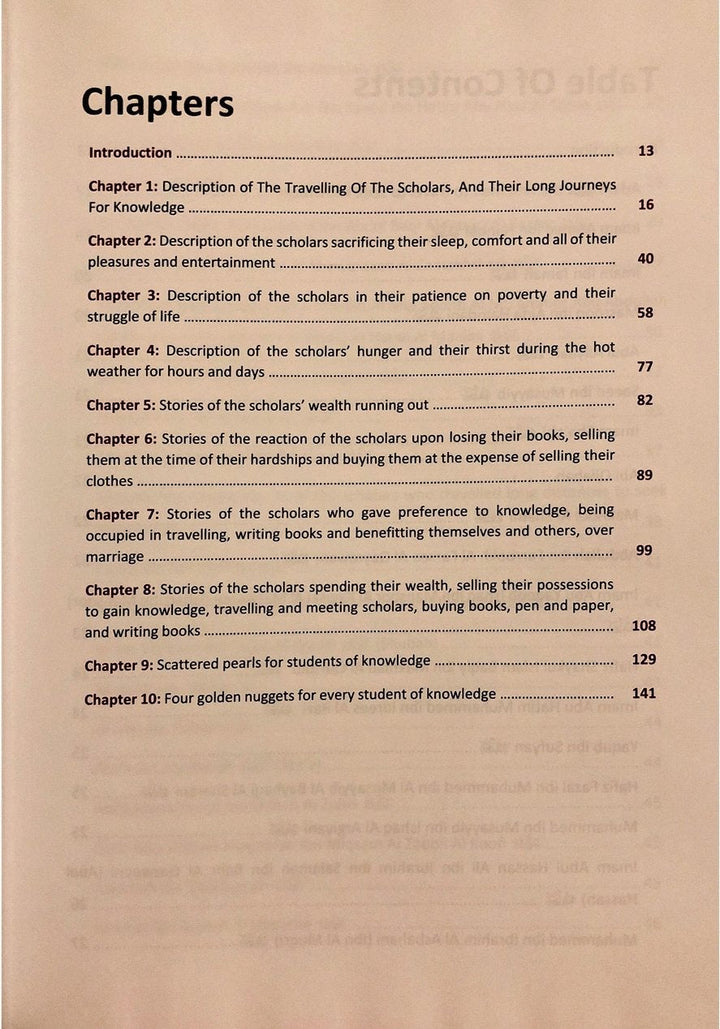 Chapter 8: Stories of the scholars spending their wealth, selling their possessions to gain knowledge, travelling and meeting scholars, buying books, pen and paper, and writing books
