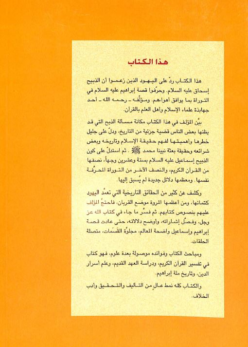 هذا الكتاب رد على اليهود الذين زعموا أن الذبيح إسحاق عليه السلام