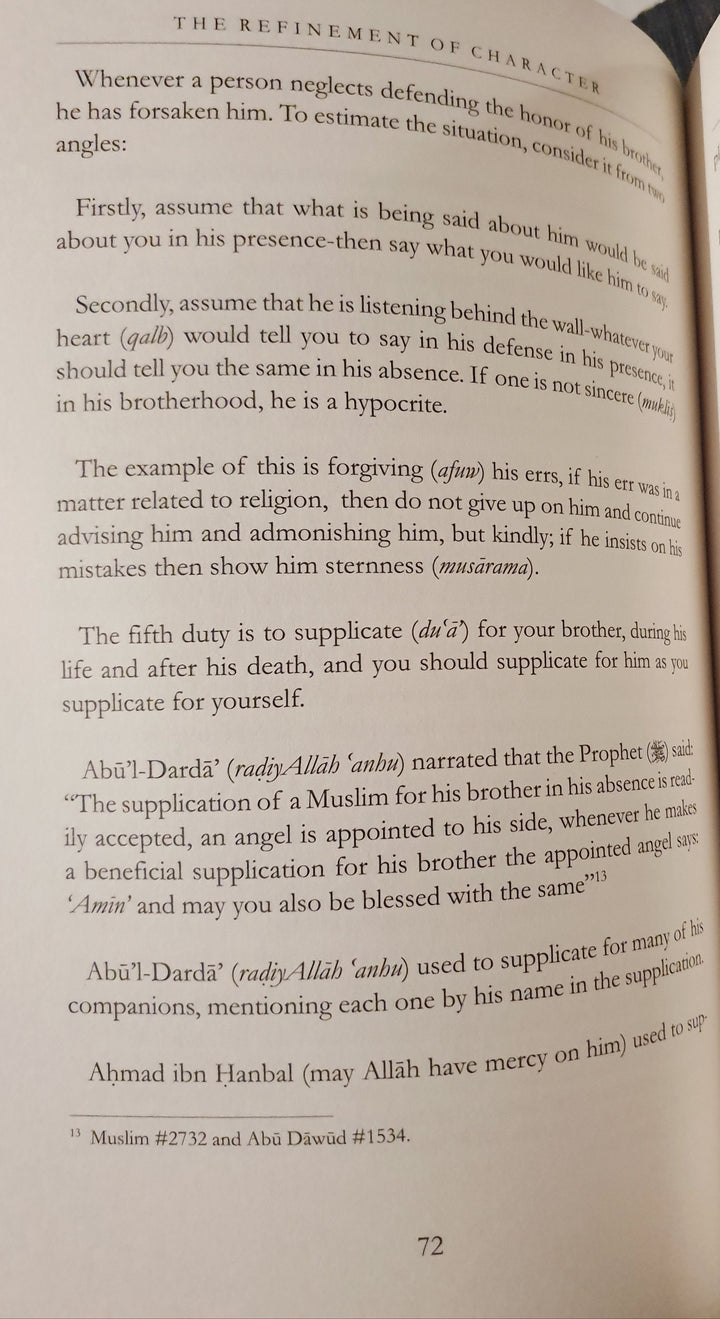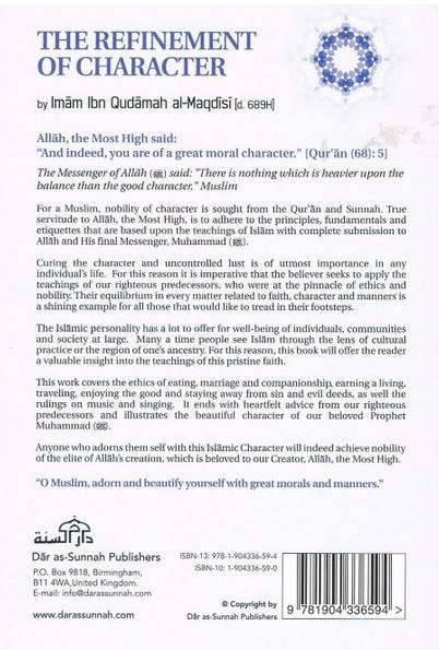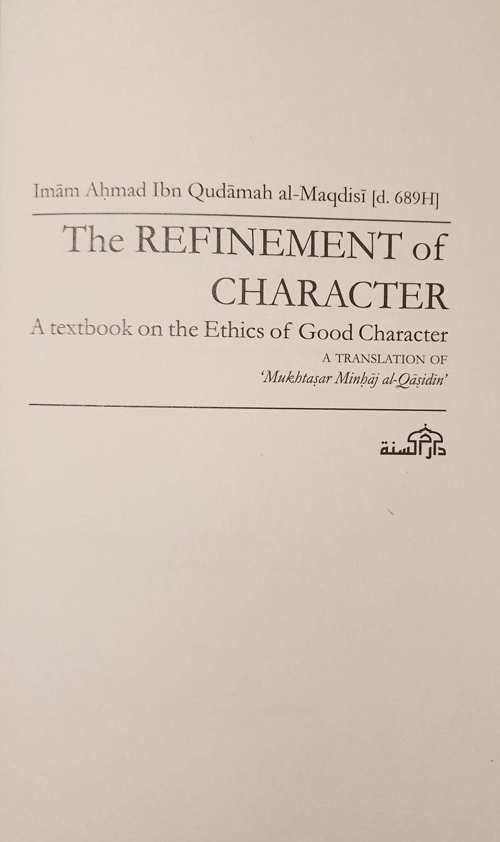 The Refinement Of Character is an English translation of selected chapters of the classical book Mukhtasar Minhaj Al-Qasidin (A Textbook On The Ethics Of Self-Discipline) by Imam Ibn Qudamah Al-Maqdisi (r).
