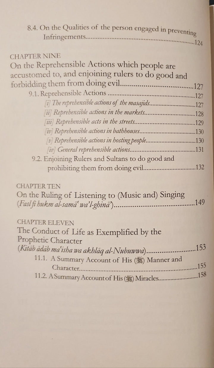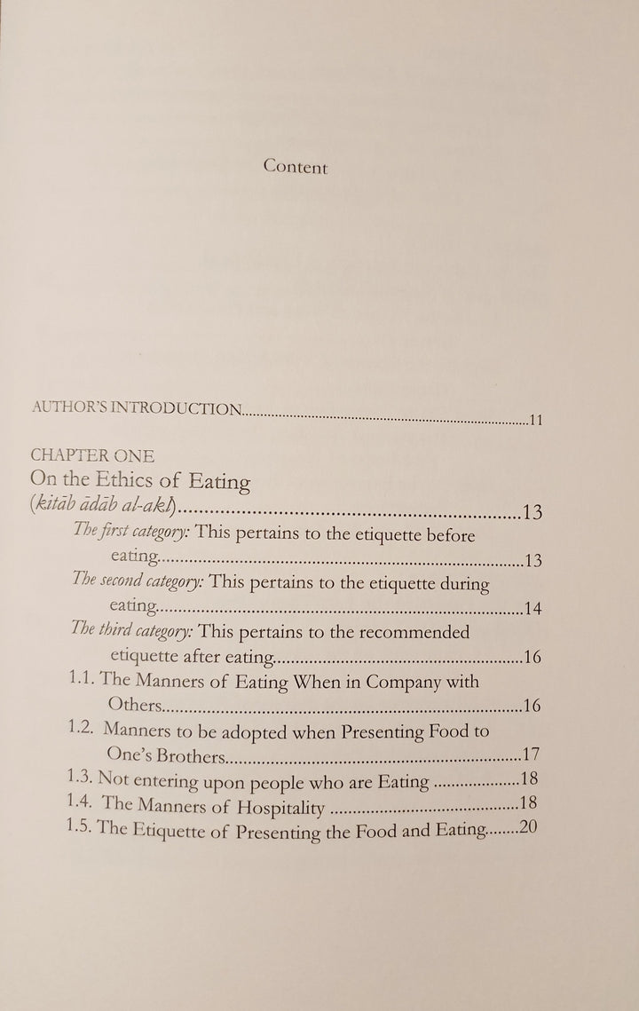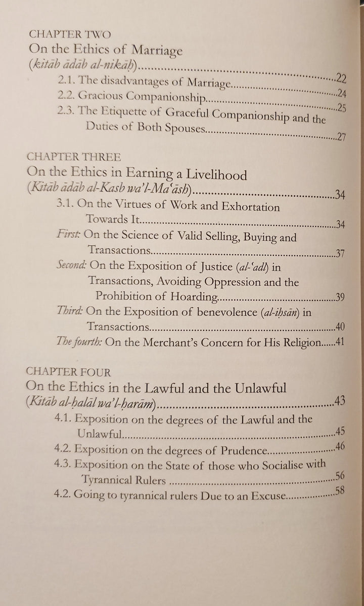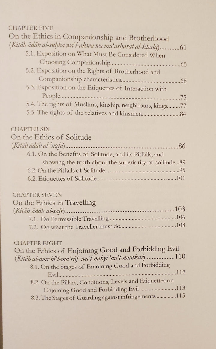 This work covers the ethics of eating, marriage and companionship, earning a living, traveling, enjoying the good and staying away from sin and evil deeds, as well as the rulings on music and singing. It ends with heartfelt advice from our righteous predecessors and illustrates the beautiful character of our beloved Prophet Muhammad (Sallalahu Alayhe Wassalam).