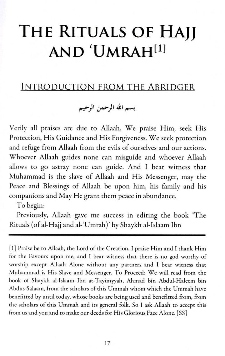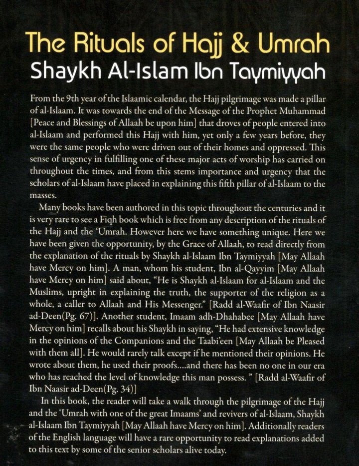 This book is an English translation of the abridgement of Shaykh-ul-Islam Ibn Taymiyyah's famous work Manasik by Shaykh Husayn Aal Shaykh along with detailed commentary from Dr. Sad Ibn Nasir al-Shithri. The book also features additional benefits from other well-known contemporary scholars, such as Shaykh Muhammad Ibn Salih al-Uthaymeen and Shaykh Abdul-Kareem al-Khudayr.