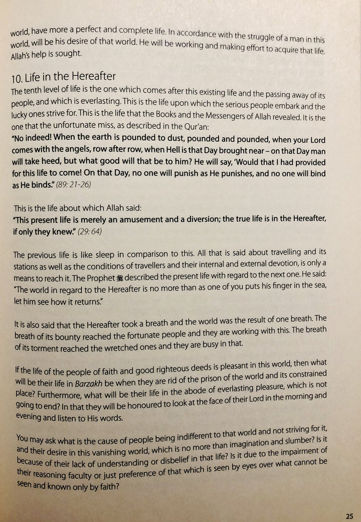 Based upon the Quran and Sunnah, the author looks in detail at the significance of life and the various levels of life - from this world to the Hereafter.