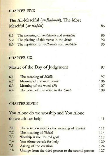 This opening chapter, despite its brevity, calls man to fulfill the rights of Tawhid, the right that Allah has over us to worship Him alone without any partners. This chapter summarizes succinctly the message of the whole Quran.