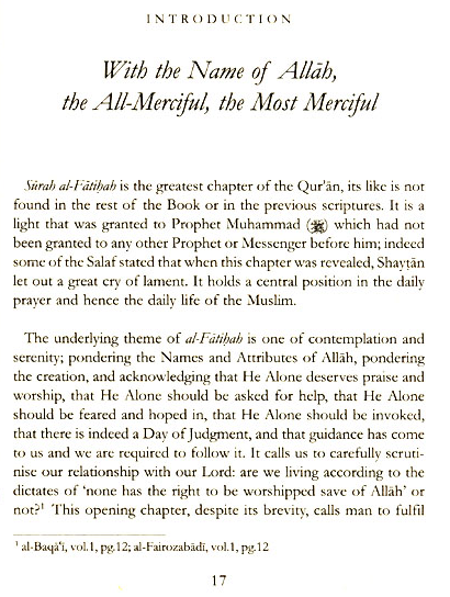 Surah al-Fatihah is the greatest chapter of the Qur'an, its like is not found in the rest of the Book or in the previous scriptures.