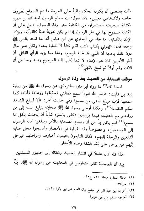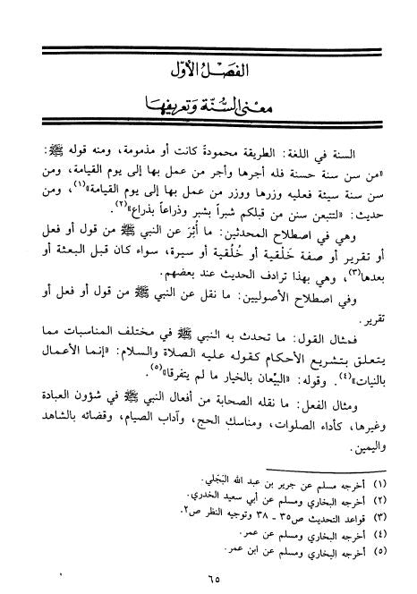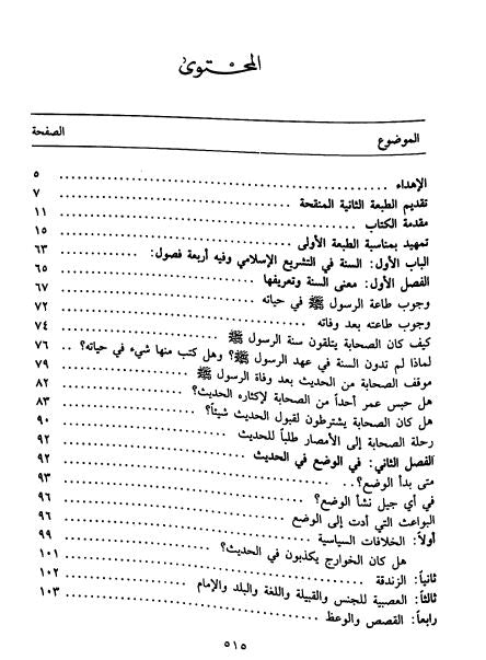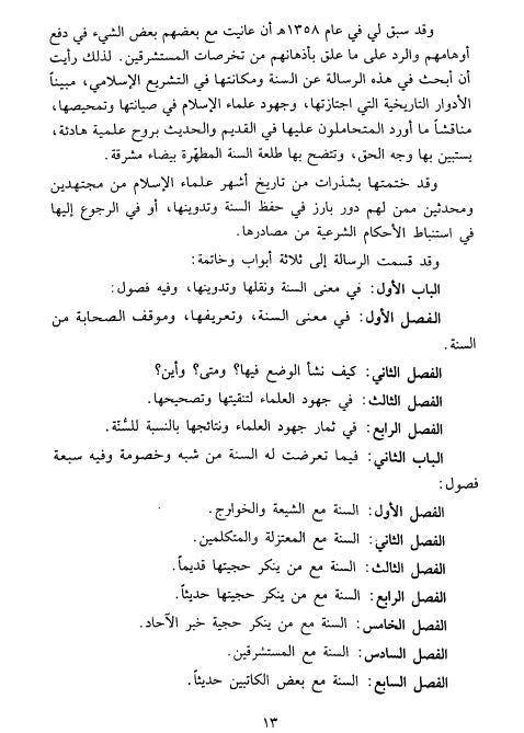 الباب الأول، وجاء في أربعة فصول، تناول السُّنَّة في التشريع الإسلامي، بدءًا من تعريف السُّنَّة، والمحطات الزمنية المختلفة للبدء في تدوينها، وأبرز الرواه وعلماء الحديث