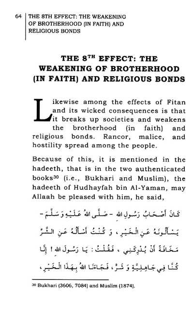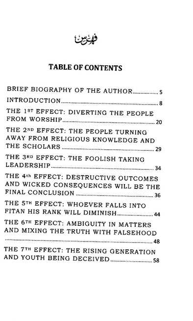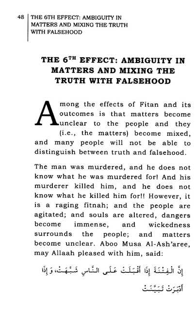 Knowing the effects of Fitan serves as a great benefit for the servant, and is useful to him as a tremendous benefit because it is from examining outcomes and consequences of matters.
