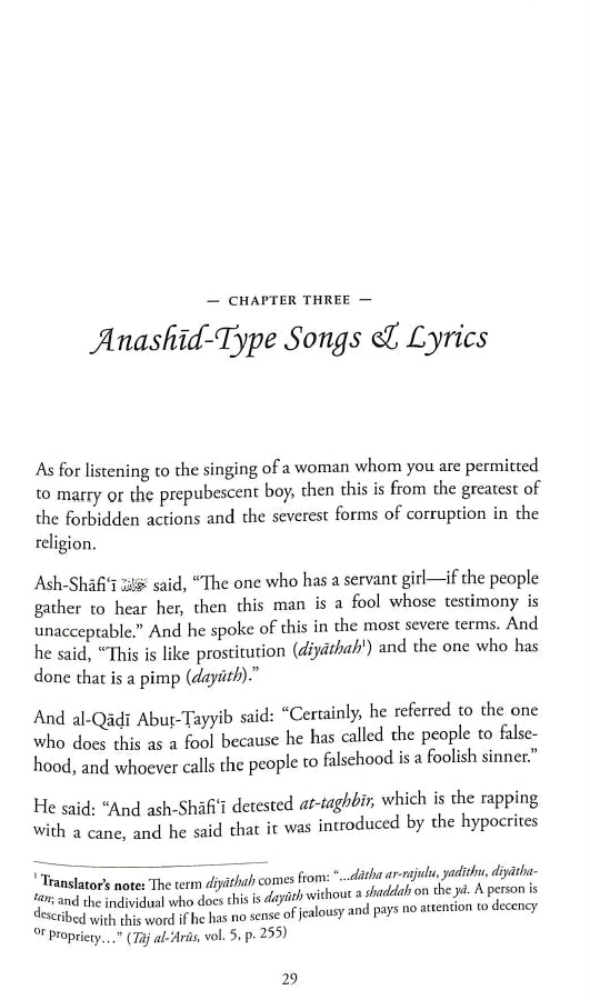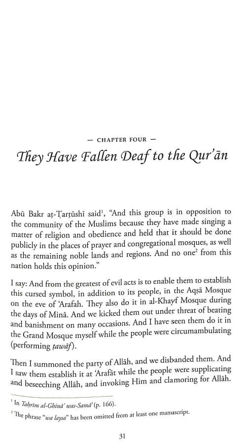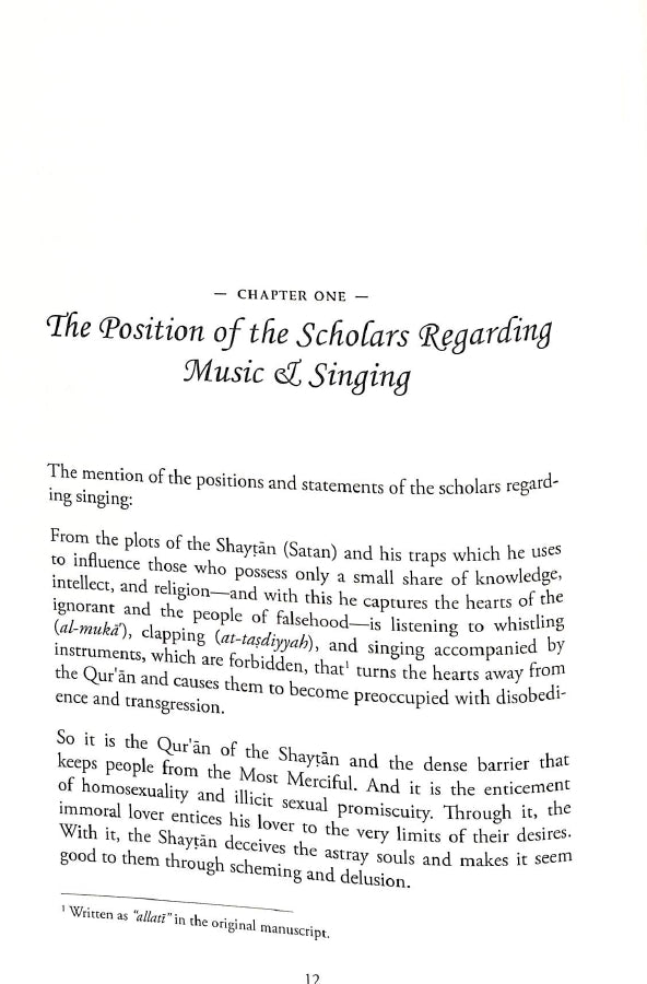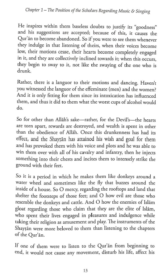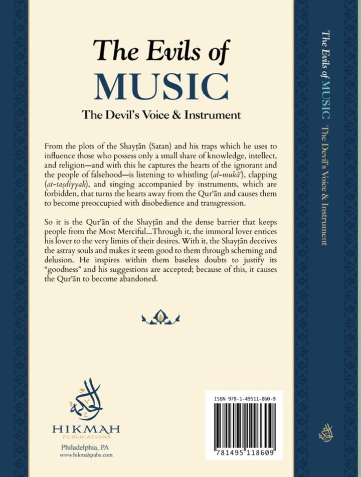 So music is the Quran of the Shaytan and the dense barrier that keeps people from the Most Merciful…Through it, the immoral lover entices his lover to the very limits of their desires. With it, the Shaytan deceives the astray souls and makes it seem good to them through scheming and delusion