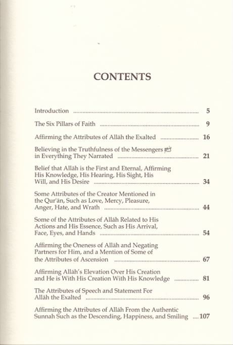 We believe in Allah the Exalted, by His beautiful names and lofty attributes, which are affirmed in the Quran and the authentic Sunnah in a way which are befitting to His majesty; without Tahreef (distortion) or ta’teel (negating) or takyeef (saying how) and tamtheel (likeness to creation). Rather we say: All of his attributes are true and all of His names are beautiful. We affirm for Allah, what He has affirmed for Himself, what His prophet (Sallallahu Alayhi Wasallam), has affirmed for Him, and what the companions of the prophet,(Radiallahu anhum), have affirmed for Him; in what which is befitting to His majesty. His attributes do not resemble the attributes of the creation, and His names do not resemble the names of His creation. He has beautiful names, and they have great meanings.
