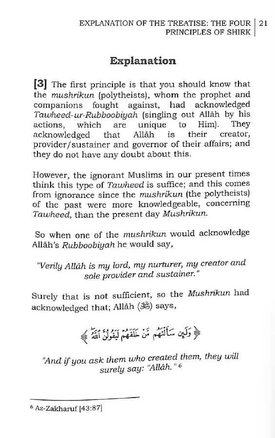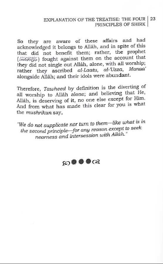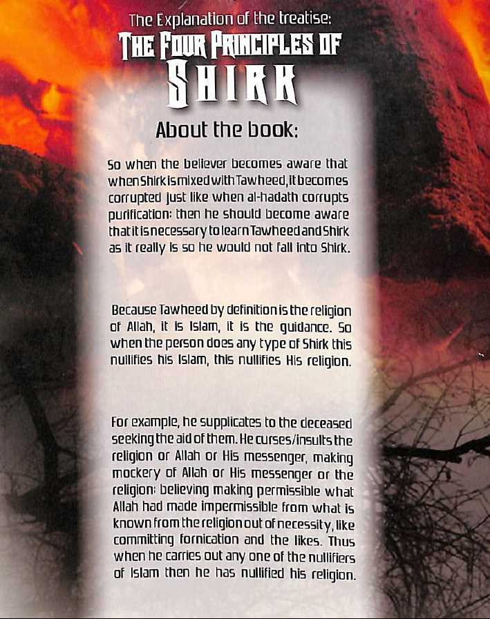 So when the believer becomes aware that when Shirk is mixed with Tawheed, it becomes corrupted just like when al-hadath corrupts purification; then he should become aware that it is necessary to learn Tawheed and Shirk as it really is so he would not fall into Shirk.
