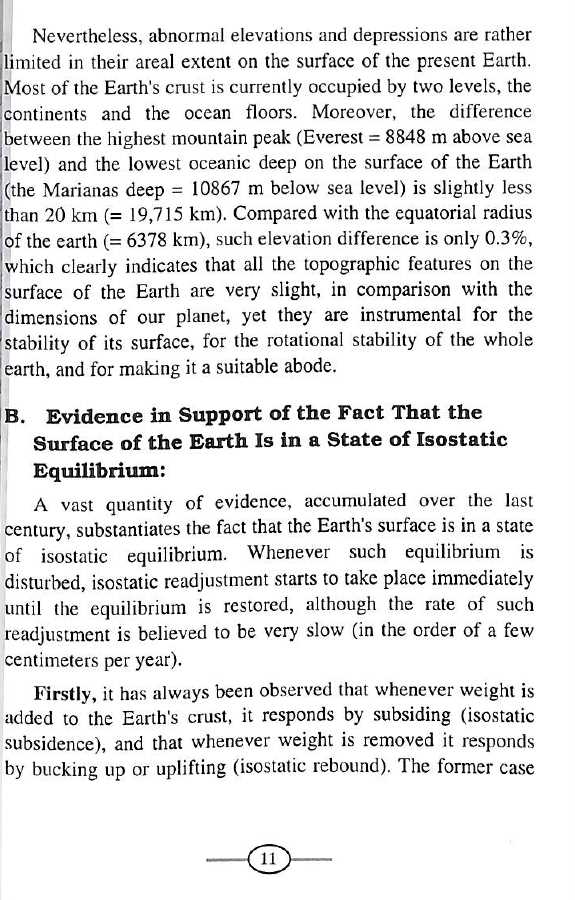 - Evidence in Support of the fact that the surface of the Earth is in a State of Isostatic Equilibrium
