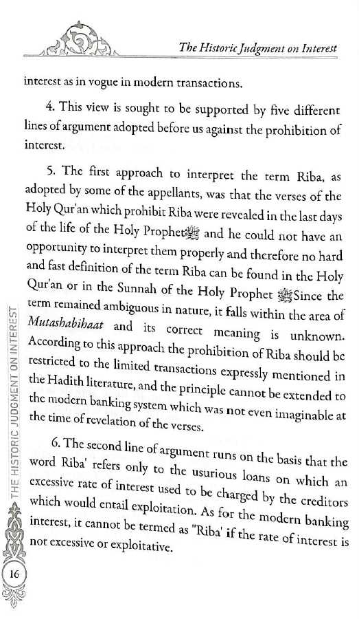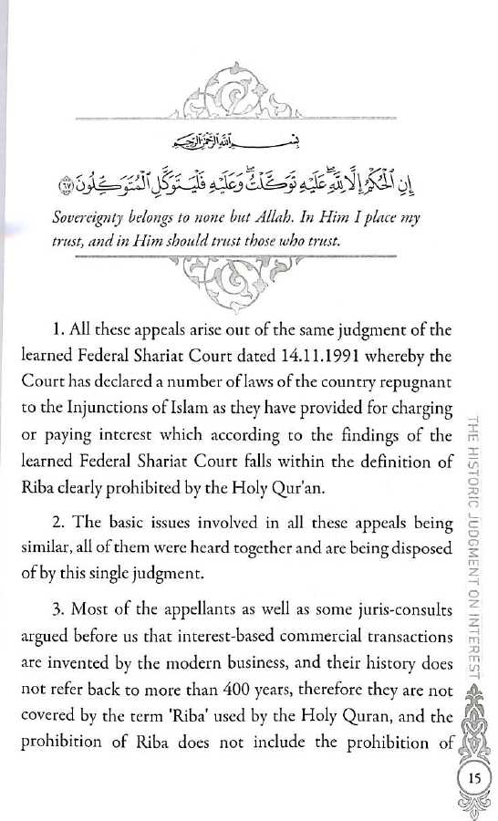 On 23rd December 1999 the Shari'at Appellate Bench of the Supreme Court of Pakistan announced its historic judgment declaring interest as unlawful according to Islamic Law.
