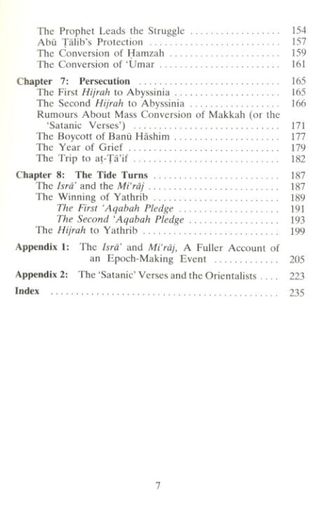 This book is based on original Arabic sources and modern writings on the Sirah, is a powerful restatement of the Makkan life of the prophet and a searching analysis of the Jahiliyah environment in which the blessings of Islam produced a generation of people who not only became the finest embodiment of human conduct but typified the highest virtues of faith and endurance. The author has not only breathed a new freshness into the subject but has focused on the Sirah in the context of the Prophet’s mission as reflected in the Quran. The focus moves beautifully and meaningfully from man to mission, from individual to movement, from past to present and the future, from chronicle of events to ethos of society and history. In paying homage and showing reverence to the Prophet some authors have exceeded proper limits while others have not been able to adequately highlight the multi-dimensional aspects of the Prophetic life.