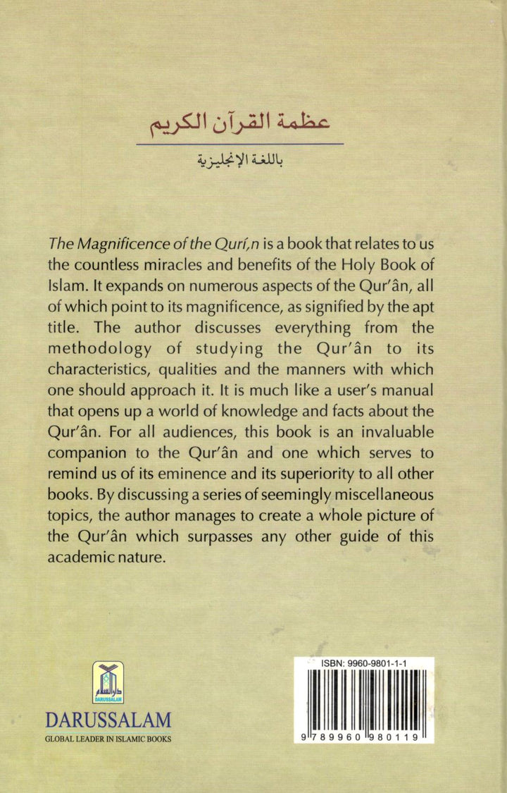 The Magnificence of the Qur’an is a book that relates to us the countless miracles and benefits of the Holy Book of Islam. It expands on numerous aspects of the Quran, all of which point to its magnificence, as signified by the apt title. The author discusses everything from the methodology of studying the Qur’an to its characteristics, qualities and the manners with which one should approach it.