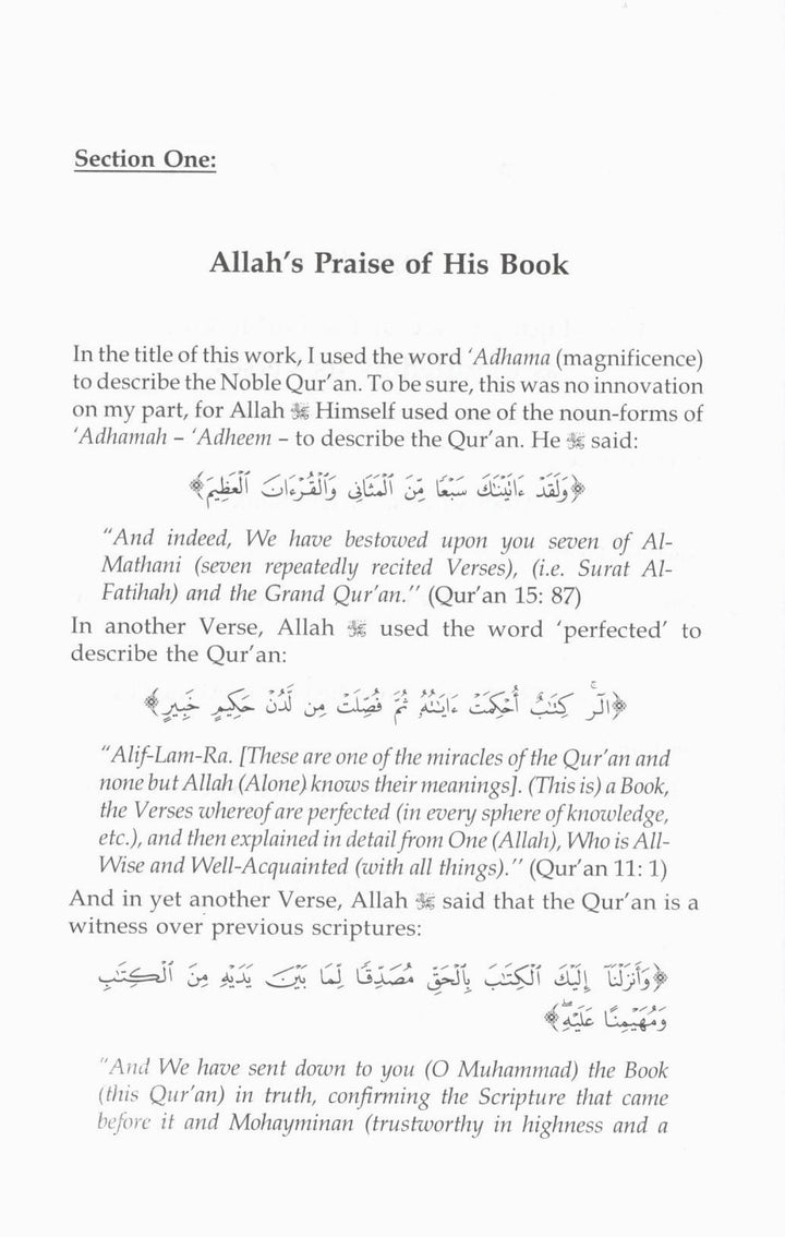 It is much like a user’s manual that opens up a world of knowledge and facts about the Qur’an. For all audiences, this book is an invaluable companion to the Qur’an and one which serves to remind us of its eminence and its superiority to all other books. By discussing a series of seemingly miscellaneous topics, the author manages to create a whole picture of the Qur’an which surpasses any other guide of this academic nature.