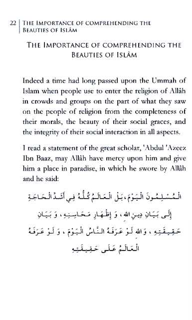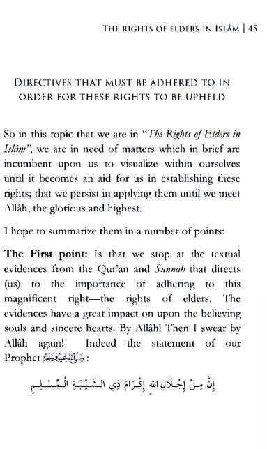 Therefore, one who does not know the rights of Allah, the Messenger (sallallahu alehi wassallam), the parents, the neighbors, the elderly in Islam and so forth, then how could he possibly establish their rights? How can he possibly be just? Due to this reason, it is among the most significant of matters and most emphasized obligations to be concerned with learning the rights (of others). And that the Muslim be concerned about it (i.e. the rights), and learning about it with the intent of performing actions according to it and establish it in a perfect and complete manner. It is a must likewise to perform it as an act of worship for Allah alone, and seeking nearness to Him. Not that this learning is to merely gain information, to increase in knowledge and have abundance of knowledge and so forth. So this is not the objective behind knowledge; rather, the only objective of knowledge is to act upon it.