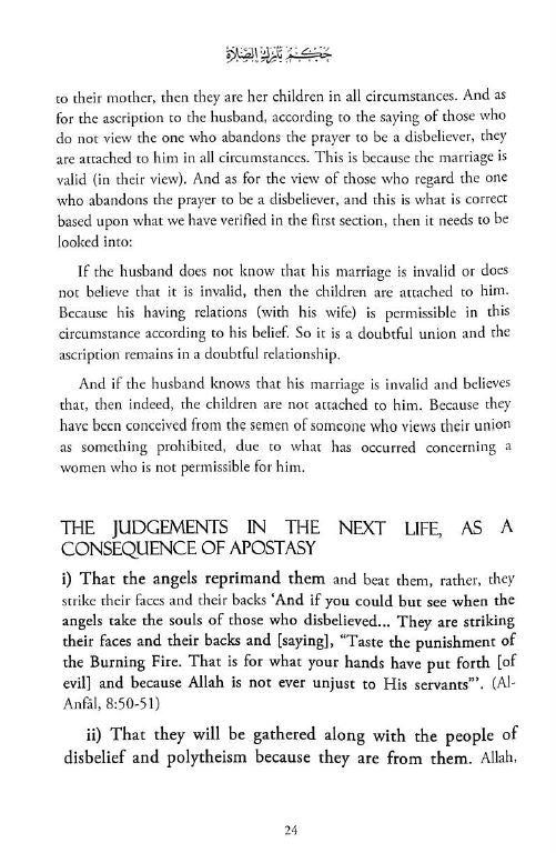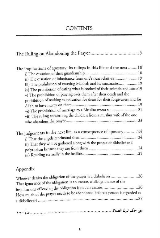 The second concerning the implications of apostasy due to abandoning the prayer or other than that. This book also has the full arabic book at the back.
