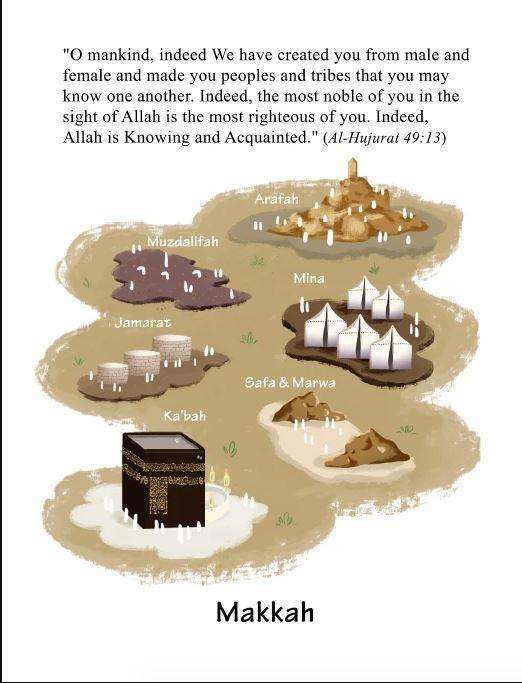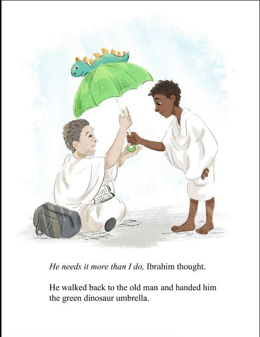 In this beautifully illustrated, whimsical story, a green dinosaur umbrella travels to Makkah and exchanges hands, helping pilgrims along their journey of Hajj.
