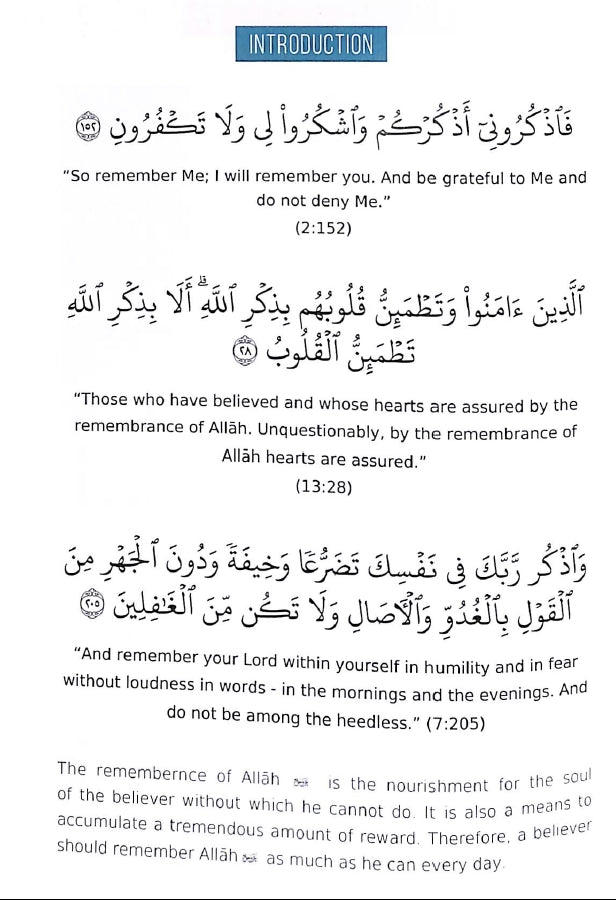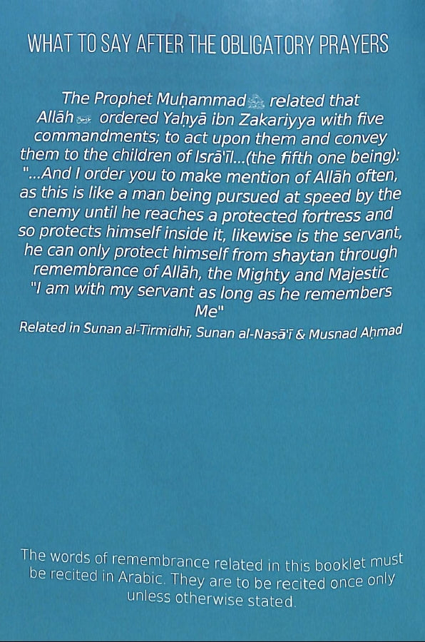 This booklet contains some of the important words of remembrance that we are encouraged to say after our obligatory prayers, and in the mornings and evenings.