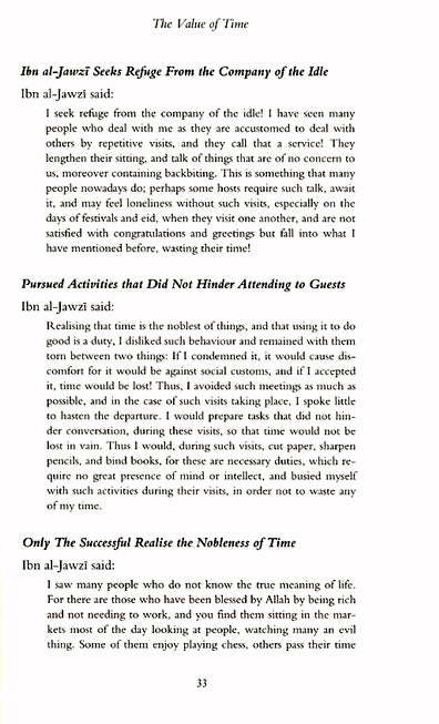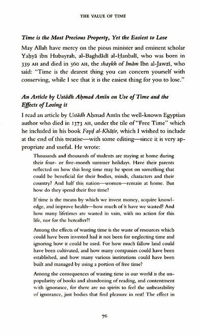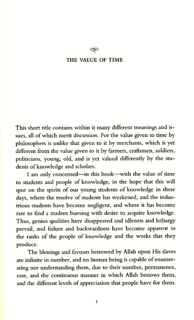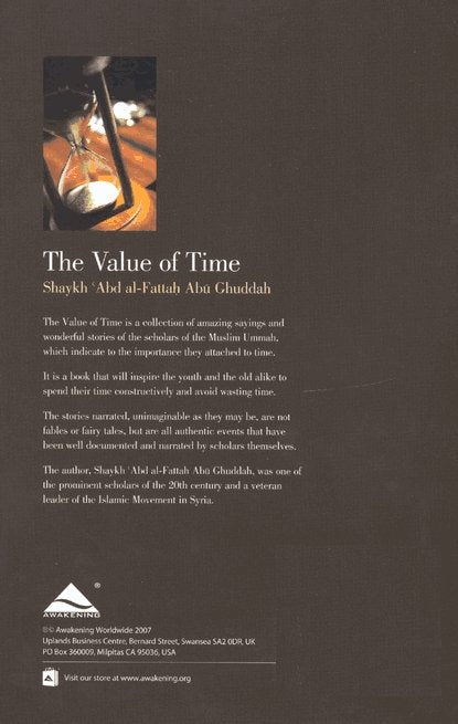 The Value of Time is a collection of amazing sayings, anecdotes and wonderful stories of the scholars of the Muslim Ummah, which indicate the importance they attached to time. It is a book that will inspire the youth and the old alike to spend their time wisely, constructively and avoid wasting time. The storeis narrated, unimaginable as they may be, are not fables nor fairy tales, but are all authentic events that have been well documented and narrated by scholars themselves. The author, Shaykh Abd al-Fattah Abu Ghuddah, was one of the prominent scholars of the 20th Century and a veteran leader of the Islamic Movement in Syria.