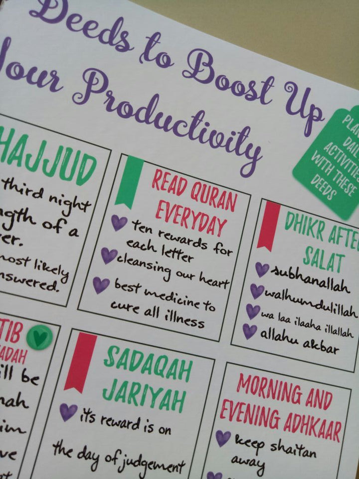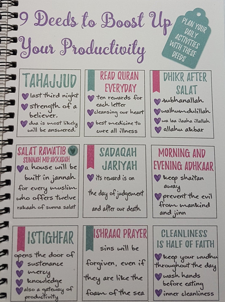 This planner will be your day to day diary to keep you on track with your deeds.