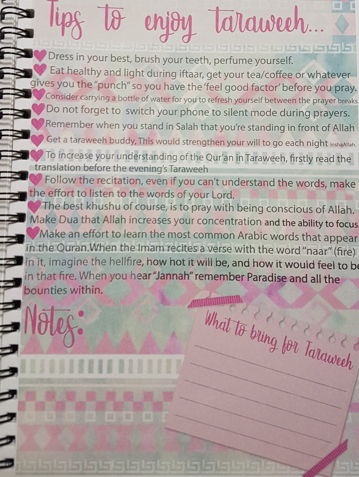 Starting from a pledge, to importance of Ramadan through Quran and Ahadeeth to building your Ramadhaan vision to setting up your goals and then action steps to secrets of boosting up your productivity in this month to daily planner to sort out your daily activities and minimize your wasting time.