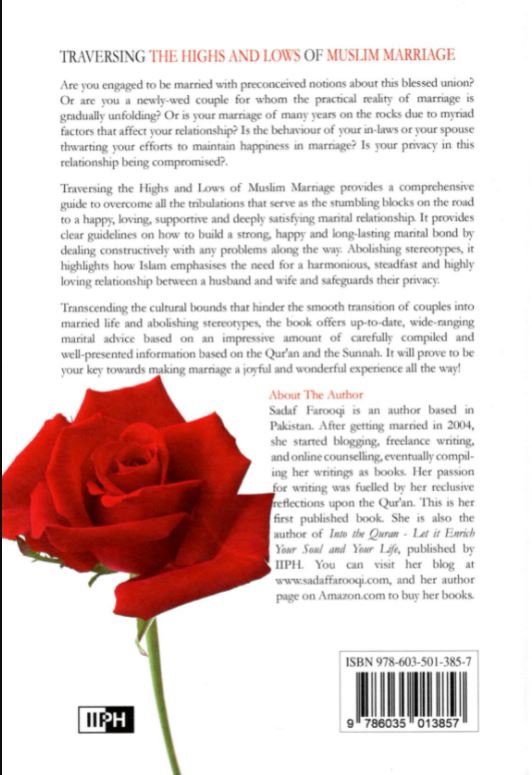 ‘Traversing the Highs and Lows of Muslim Marriage’ provides a comprehensive guide to overcome all the tribulations that serve as the stumbling blocks on the road to a happy, loving, supportive and deeply satisfying marital relationship. It provides clear guidelines on how to build a strong and long-lasting marital bond by dealing constructively with any problems along the way. It highlights how Islam emphasizes the need for a harmonious, steadfast and highly loving relationship between a husband and wife and how Islam safeguards their privacy.