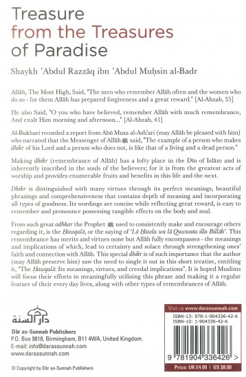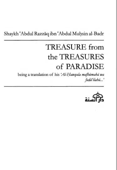 Title: Treasure from the Treasures of Paradise - English Translation Of الحوقلة مفهومها وفضائلها ودلالاتها العقدية