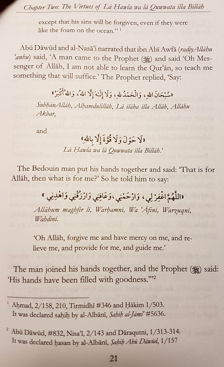From such great adhkar the Prophet used to consistently make and encourage others regarding it, is the Hawqala, or the saying of ‘لا حول ولا قوة الا بالله / La Hawla wa la Quwwata illa Billah’. This remembrance has merits and virtues none but Allah fully encompasses - the meanings and implications of which, lead to certainty and solace through strengthening one’s faith and connection with Allah.