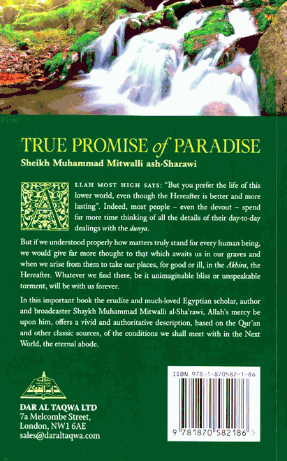 Allah Most High says: "But you prefer the life of this lower world, even though the hereafter is better and more lasting". Indeed, most people - even the devout - spend far more time thinking of all the details of their day to day dealings with the dunya.But if we understood properly how matters truly stand for every human being, we would give far more thought to that which awaits us in our graves and when we arise from them to take our places, be it unimaginable bliss or unspeakable torment, will be with us forever. In this important book the erudite and much loved Egyptian scholar, author and broadcaster Shaykh Muhammad Mitwalli al Sha'rawi, Allah's mercy be upon him, offers a vivid and authoritative description, based on the Qur'an and other classic sources, of the conditions we shall meet with in the next world, the eternal abode.