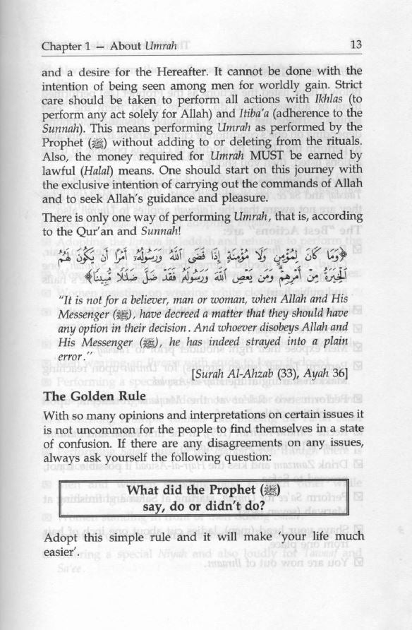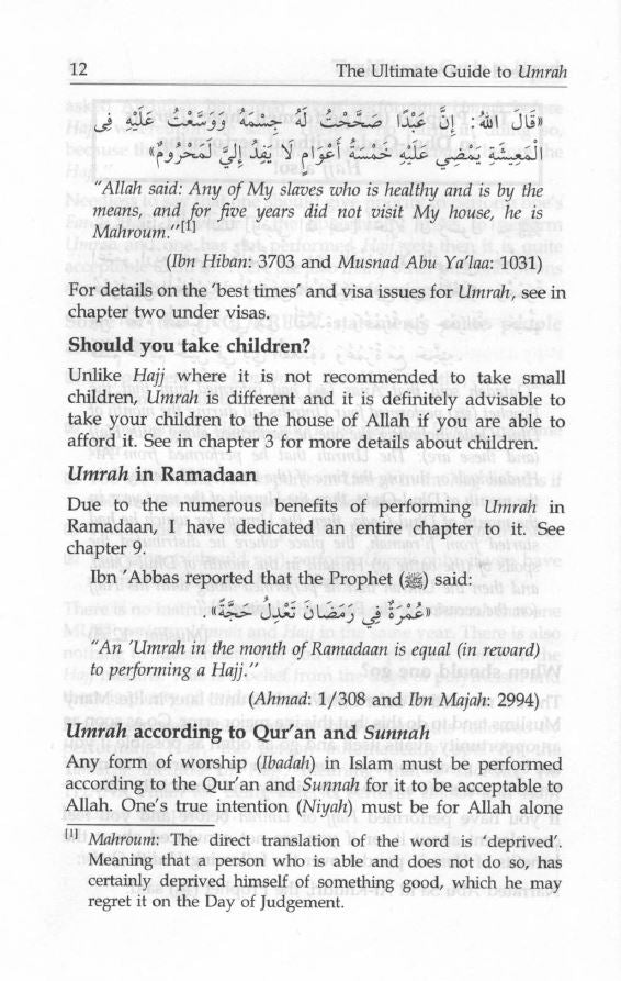 Based on the famous book 'Getting the Best out of Hajj' With special chapters on Umrah in Ramadaan & Visiting Madinah After Hajj, a Muslim considers Umrah to be the most significant worship that brings the opportunity of rewards and the blessings of visiting Ka'bah and the Prophet's Mosque along with other sacred places one wishes to visit, and try to feel the atmosphere present at the time of Allah's Messenger (ﷺ) and the hardships he had to bear while preaching Islam. During such a visit, a newcomer has to face many difficulties because of lack of knowledge about the rites and places. To provide complete details about everything, a pilgrim wants to know, first time this book has been compiled with utmost care and research so as to make it useful in every respect.
