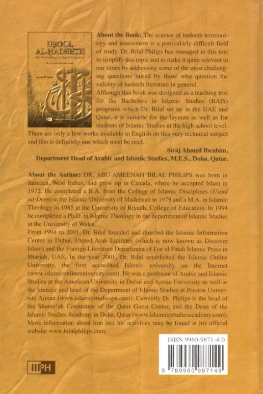 The science of hadeeth terminology and assessment is a particularly difficult field of study. Dr. Bilal Philips has managed in this text to simplify this topic and to make it quite relevant to our times by addressing some of the most challenging questions raised by those who question the validity of hadeeth literature in general.