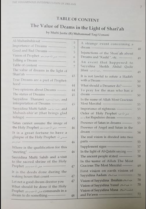 Also contains 'The Value of Dreams in the Light of the Shari'ah' by Mufti Muhammad Taqi 'Uthmani.
