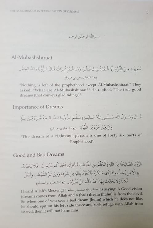 The Interpretation of Dreams is a Complex Subject so this book can only be used as a reference but real interpretation can only be carried out by experts in this field as Imam Ibn Sirin himself says: