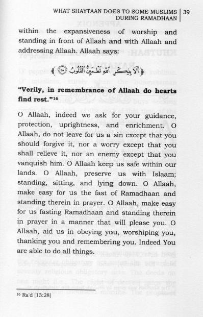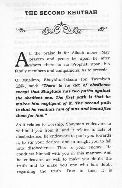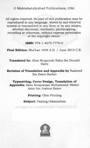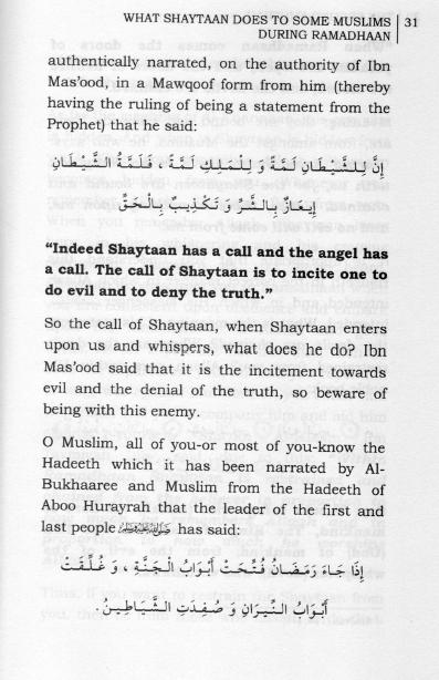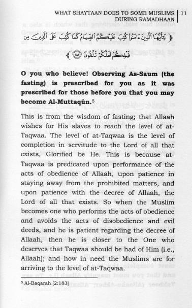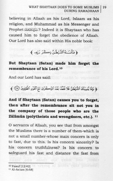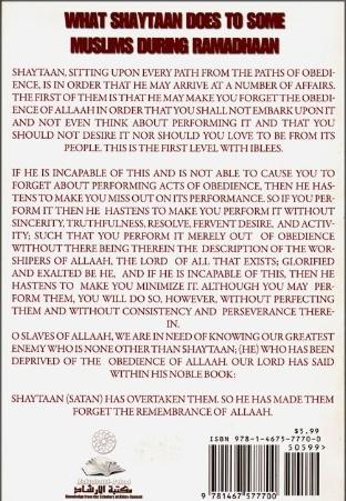 This book is an English translation of a Khutbah titled What Shaytaan Does To Some Muslims During Ramadhaan?, delivered by Shaykh Aboo Nasr Muhammad Ibn Abdullah Al-Imaam.