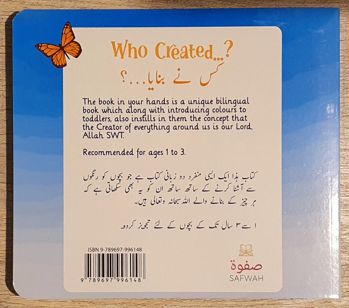This book is a unique bilingual board book, which introduces colours to toddlers and instills in them the concept that the Creator of everything around us is Allah SWT.