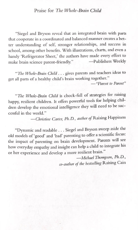 In this pioneering, practical book for parents, neuroscientist Daniel J. Siegel and parenting expert Tina Payne Bryson explain the new science of how a child's brain is wired and how it matures. Different parts of a child's brain develop at different speeds and understanding these differences can help you turn any outburst, argument, or fear into a chance to integrate your child's brain and raise calmer, happier children.