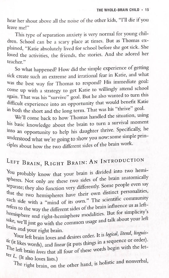 Featuring clear explanations, age-appropriate strategies and illustrations that will help you explain these concepts to your child, The Whole-Brain Child will help your children to lead balanced, meaningful, and connected lives using twelve key strategies, including:
