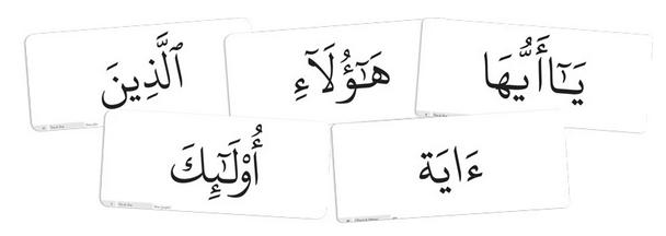 - Each word is isolated on a card in large text allowing it to be easily committed to visual memory and recalled during Quran reading and thereby speeding up recitation.
