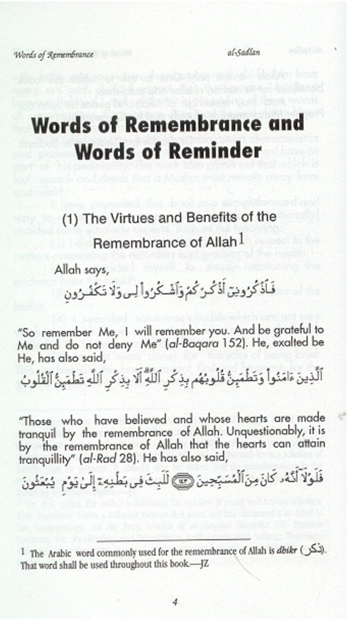 Title: Words Of Remembrance & Words Of Reminder : Encompassing Important Dhikr and Important Islamic Behaviour